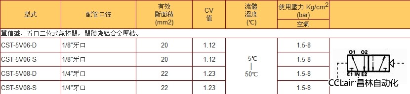 詳細信息 CST-5V06-D,CST-5V06-S,CST-5V08-D,CST-5V08-S,電磁閥