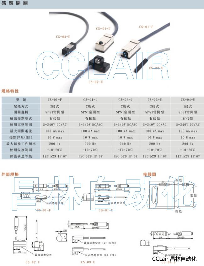 詳細信息 CS-01-F,CS-01-U,CS-02-U,CS-3-U,CS-04-U,感應開關