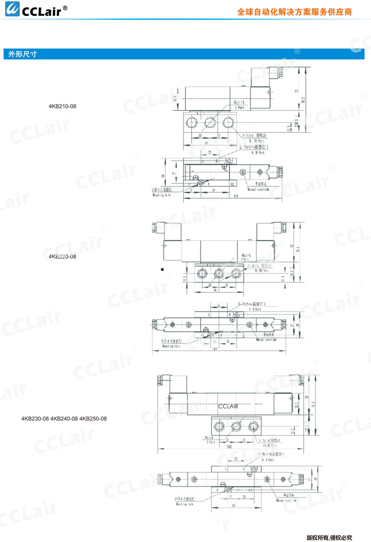 4KB210-08,4KB220-08,4KB230-08,4KB240-08,4KB250-08,先導式五通電磁閥