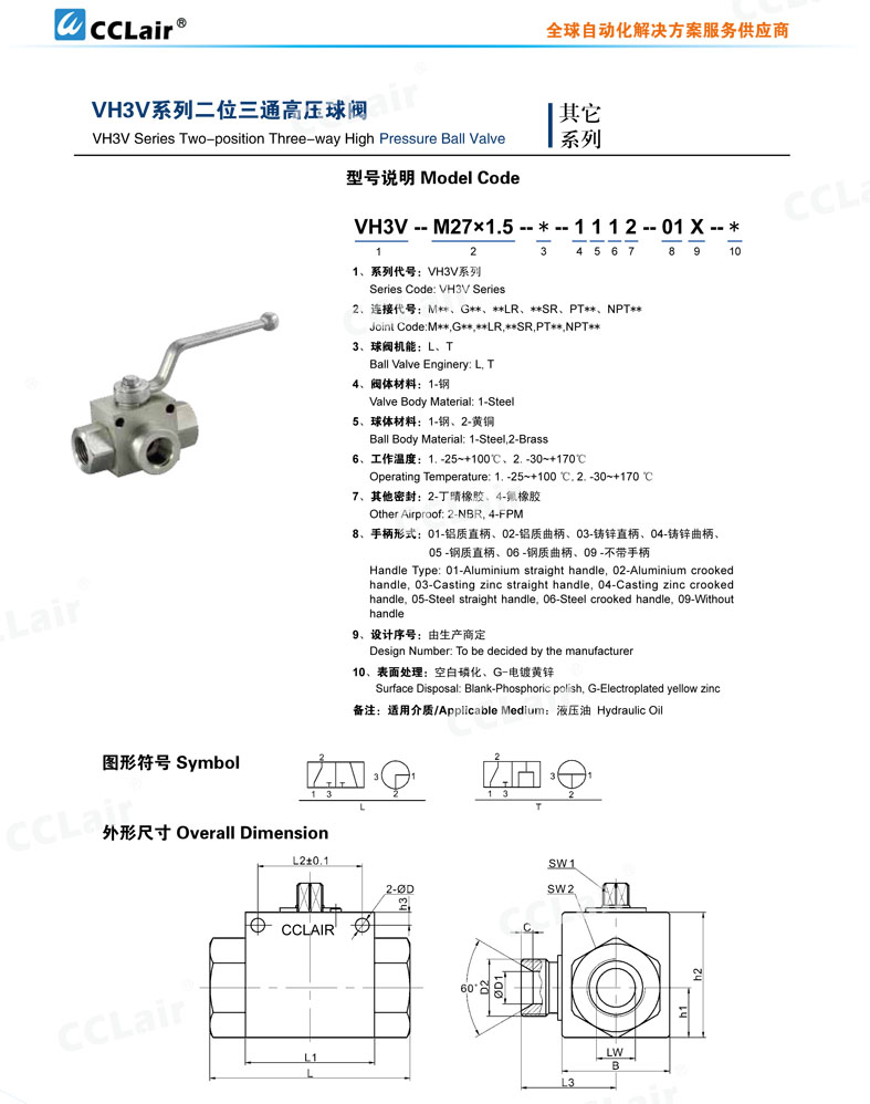 詳細(xì)信息 VH3V-08LR,VH3V-12LR,VH3V-15LR,VH3V-18LR,VH3V-22LR,VH3V-28LR,二位三通高壓球閥