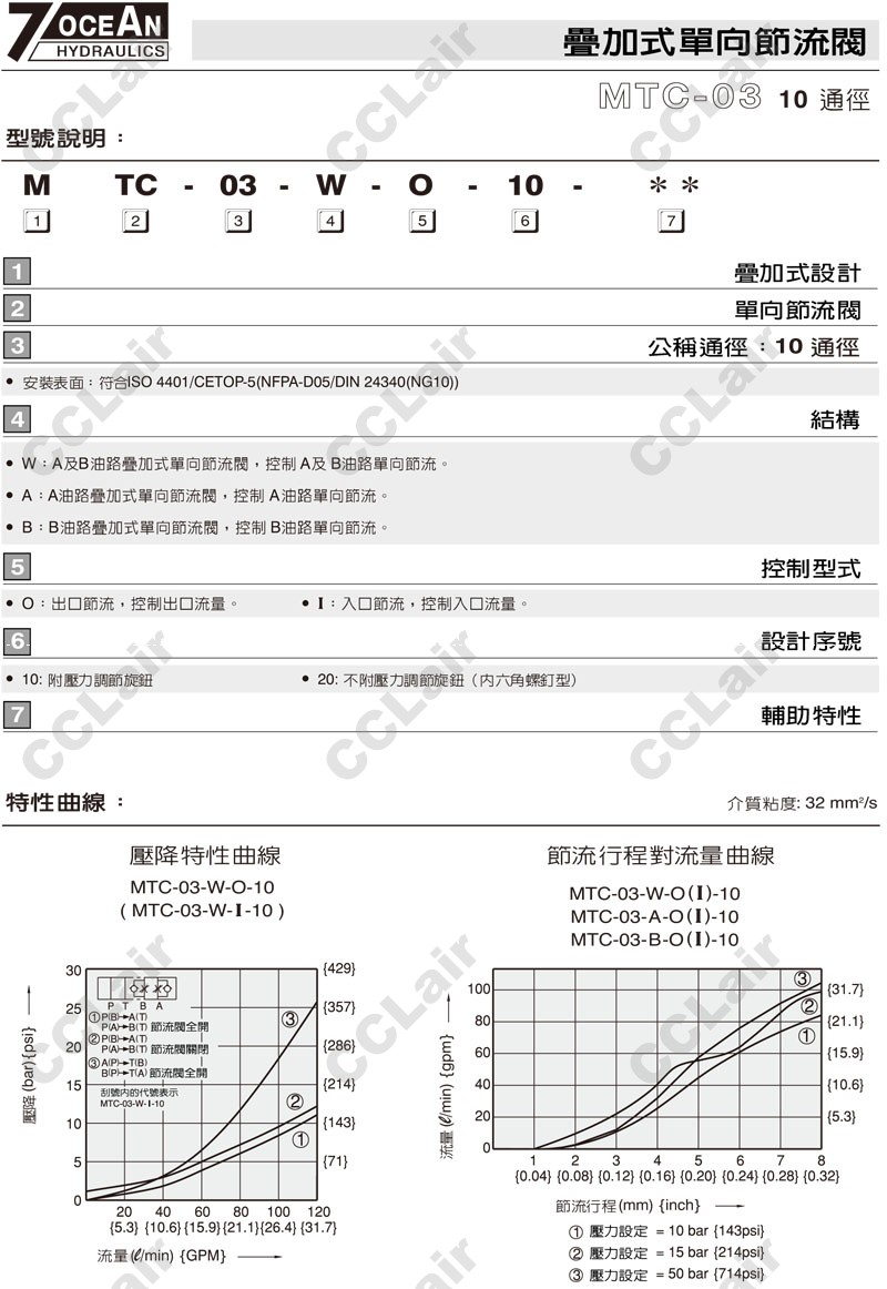 MTC-03-W,MTC-03-A,MTC-03-B,MTC-03-A-I-10,MTC-03-W-O-20,MTC-03-B-I-20,7OCEAN七洋疊加式單向節(jié)流閥