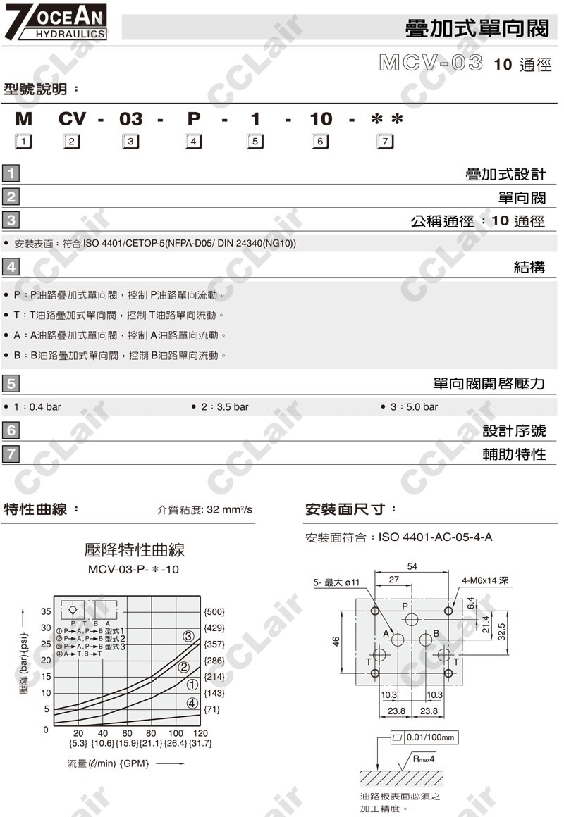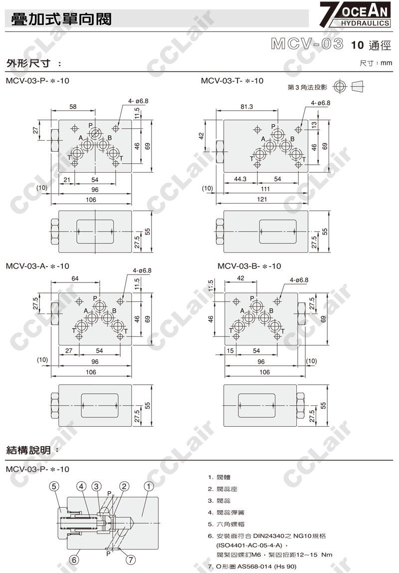 MCV-03-P,MCV-03-T,MCV-03-A,MCV-03-B,MCV-03-B-2-10,MCV-03-P-1-10,7OCEAN七洋疊加式單向閥