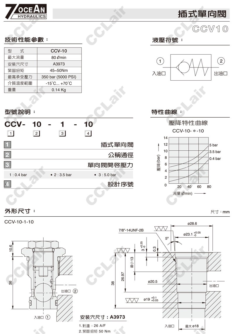 CCV-10-1-10,CCV-10-2-10,CCV-10-3-10,7OCEAN七洋插式單向閥