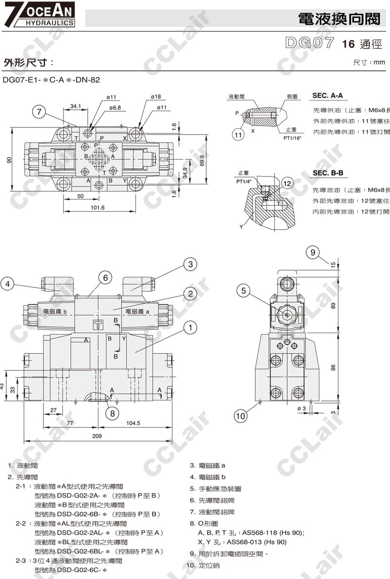 DG07-E1,DG07-E2,DG07-E1-11BL-ET-A110-DN-82,DG07-E2-11BL-E-A120-DN-82,7OCEAN七洋電液換向閥