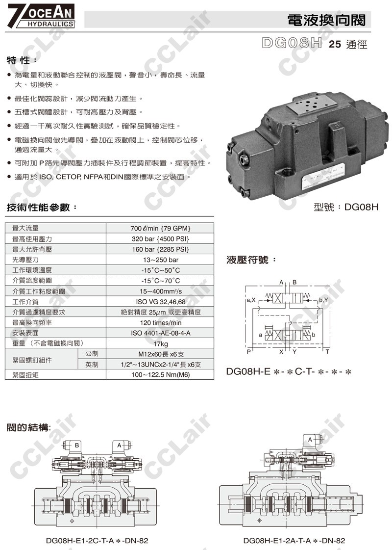 DG08H-E1,DG08H-E2,DG08H-E1-11BL-ET-A110-DN-82,DG08H-E2-11BL-E-A120-DN-82,7OCEAN七洋電液換向閥