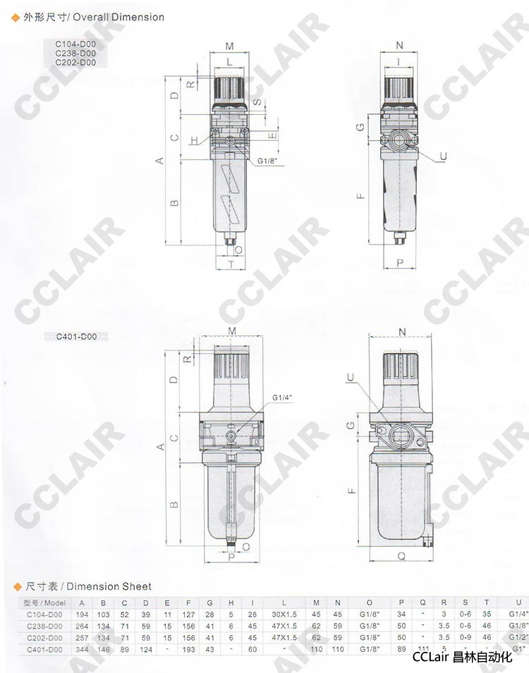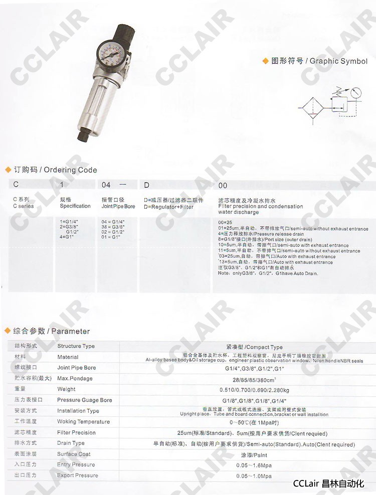 | 氣過濾減壓閥 | C1-04D | G1/4 |