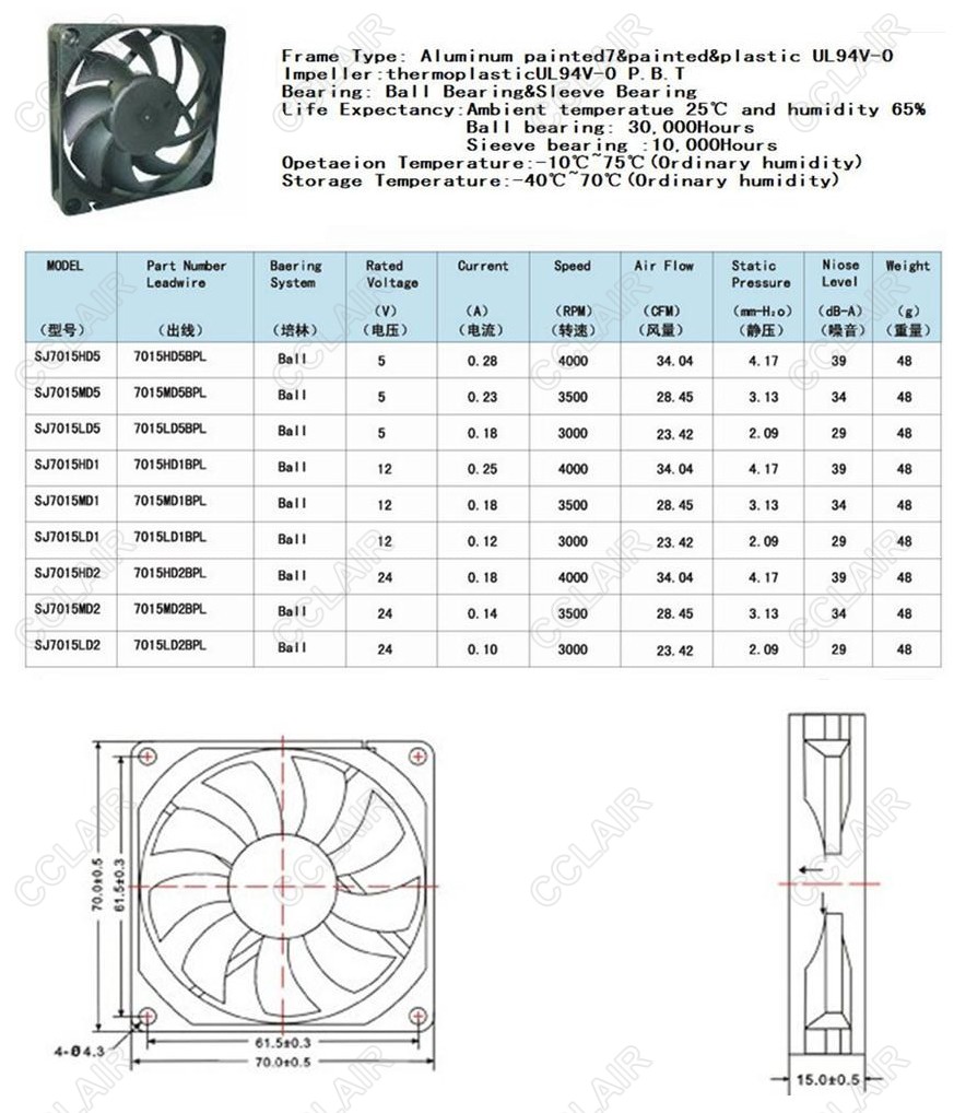 » SJ7015HD5,SJ7015MD5,SJ7015LD5,SJ7015HD1,SJ7015MD1,SJ7015LD1,SJ7015,SANJI DC軸流風機