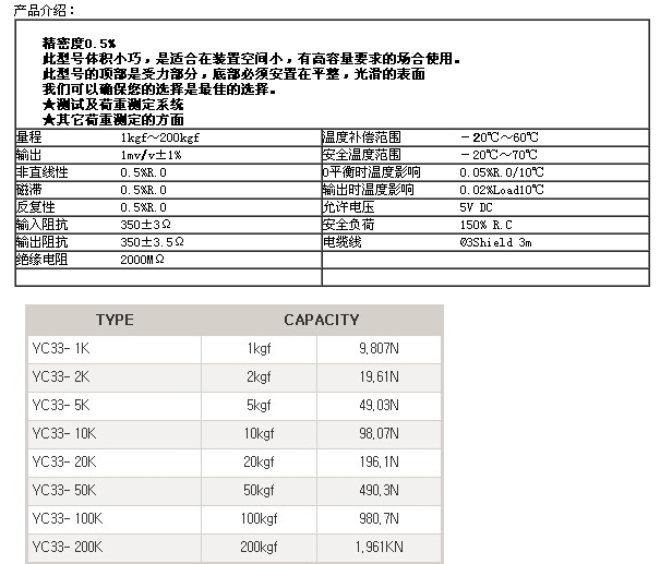 產(chǎn)品: 瀏覽次數(shù):516YC33-1K,YC33-2K,YC33-5K,YC33-10K,YC33-20K,YC33-50K,setech稱重傳感器