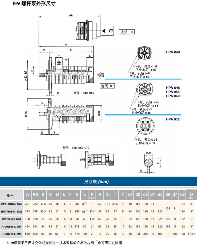 詳細信息 HPA040#4A,HPA045#4A,HPA055#4A,HPA060#4A,HPA072#4A,浸沒式三螺桿泵