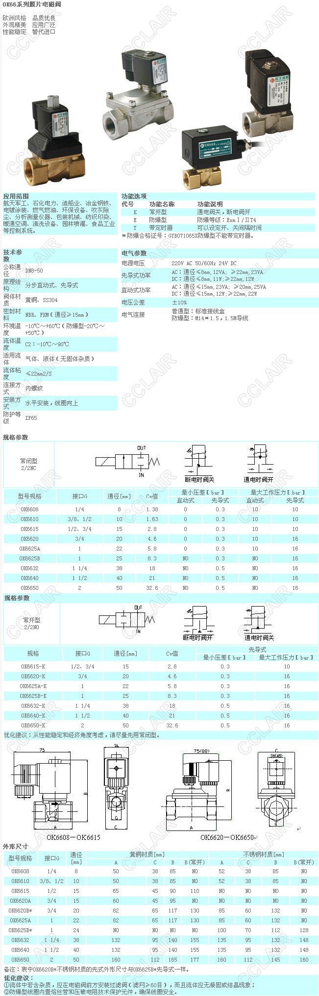OK6608,OK6610,OK6615,OK6625B-K,OK6640-K,OK6650-K,OK66,膜片電磁閥