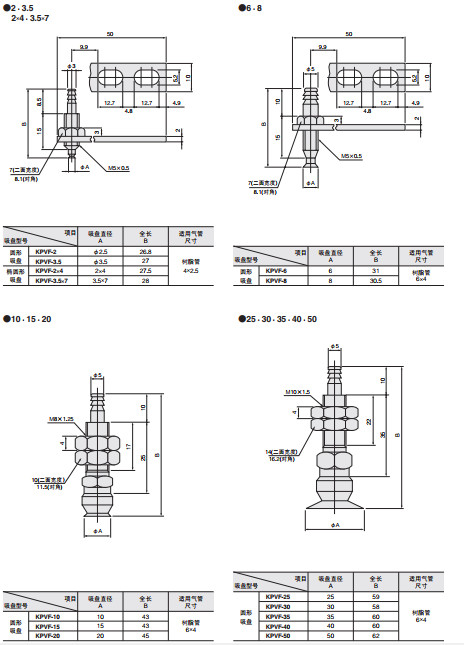KPVF-2,KPVF-3.5,KPVF-2*4,KPVF-3.5*7,KPVF-6,KPVF-8,真空吸盤縱向配管固定型KPVF系列
