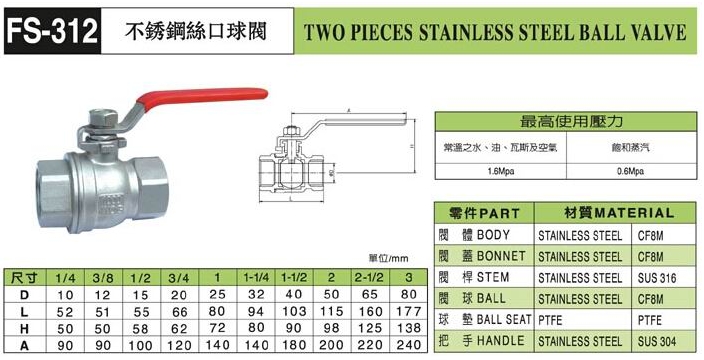 FS-312,不銹鋼絲口球閥