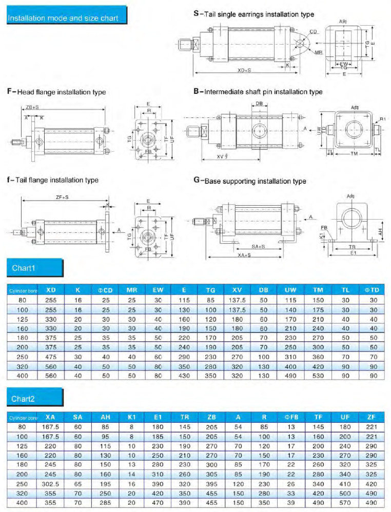 JB80,JB100,JB125,JB160,JB180,JB200,JB250,JB320,JB400,Shinya氣缸
