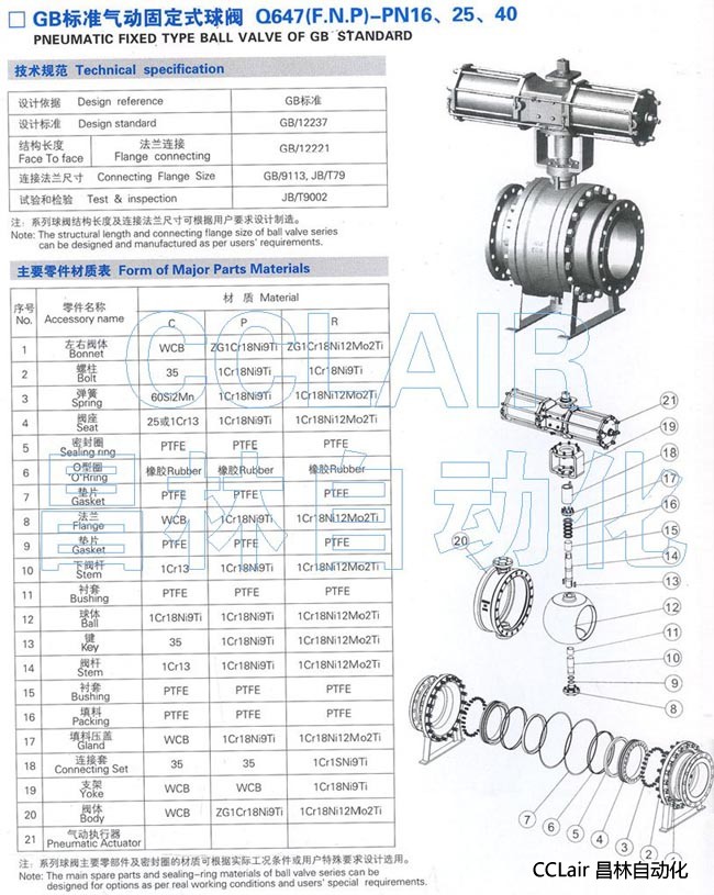Q647F-16,Q647F-25,Q647F-40,標(biāo)準(zhǔn)氣動固定式球閥