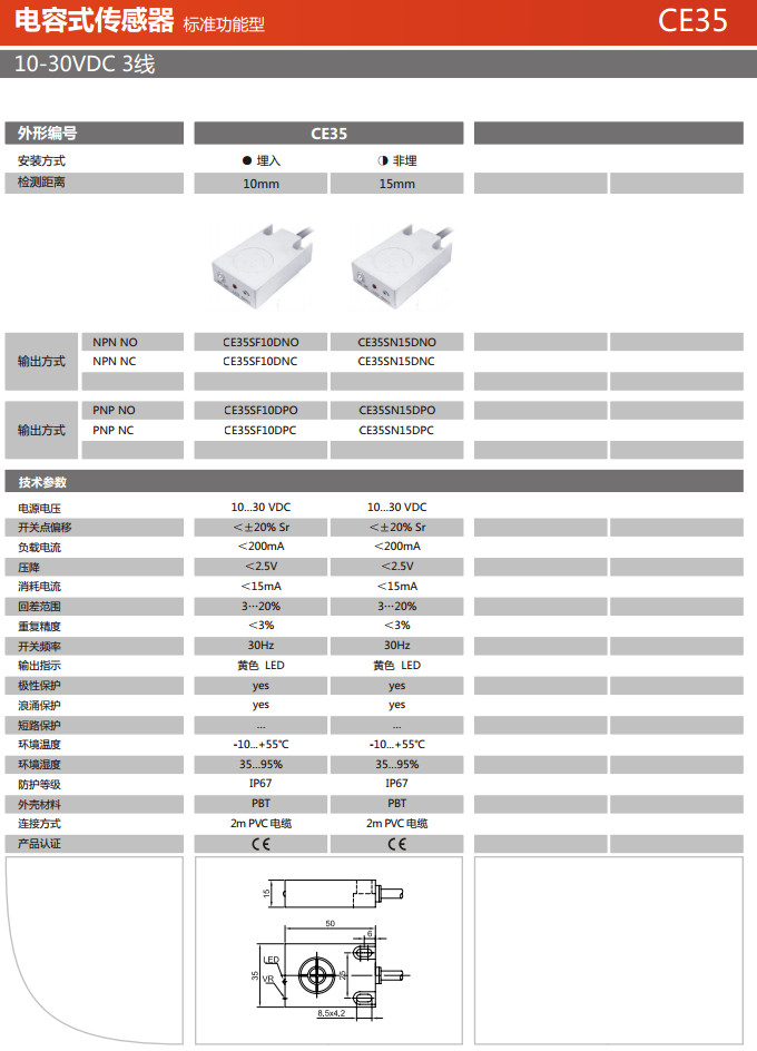 詳細(xì)信息 CE35SF10DNO,CE35SF10DNC,CE35SF10DPO,CE35SF10DPC,CE35SN15DNO,CE35SN15DNC,CE35SN15DPO,CE35SN15DPC,電容式傳感器
