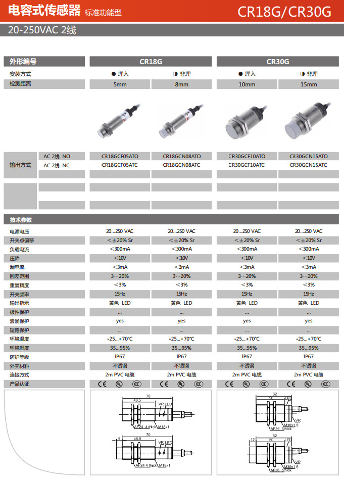 詳細(xì)信息 CR18GCF05ATO,CR18GCF05ATC,CR18GCN08ATO,CR18GCN08ATC,CR30GCF10ATO,CR30GCF10ATC,CR30GCN15ATO,CR30GCN15ATC,電容式傳感器