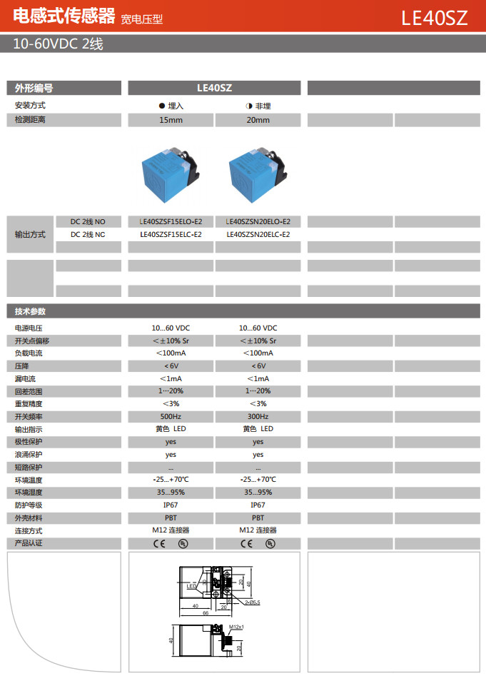 LE40SZSF15ELO-E2,LE40SZSF15ELC-E2,LE40SZSN20ELO-E2,LE40SZSN20ELC-E2,電感式傳感器