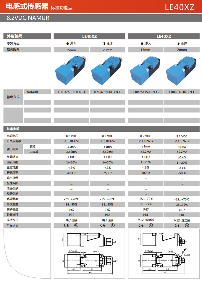 LE40XZSF15FLCN-D,LE40XZSN20FLCN-D,LE40XZSF15FLCN-E2,LE40XZSN20FLCN-E2,電感式傳感器