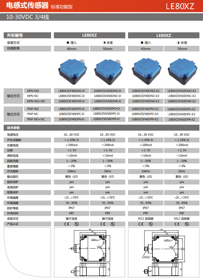 LE80XZSF40DNO-D,LE80XZSF40DNC-D,LE80XZSF40DNR-D,LE80XZSN50DNO-D,LE80XZSN50DNC-D,電感式傳感器