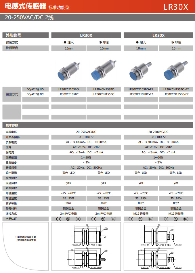詳細(xì)信息 LR30XCF10SBO,LR30XCF10SBC,LR30XCN15SBO,LR30XCN15SBC,LR30XCF10SBO-E2,LR30XCF10SBC-E2,LR30XCN15SBO-E2,LR30XCN15SBC-E2,電感式傳感器