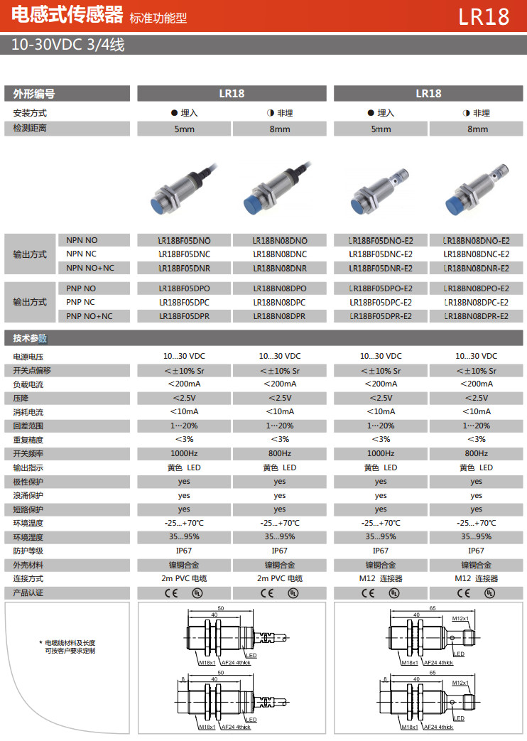詳細信息 LR18BF05DNO,LR18BF05DNC,LR18BF05DNR,LR18BN08DNO,LR18BN08DNC,LR18BN08DNR,電感式傳感器