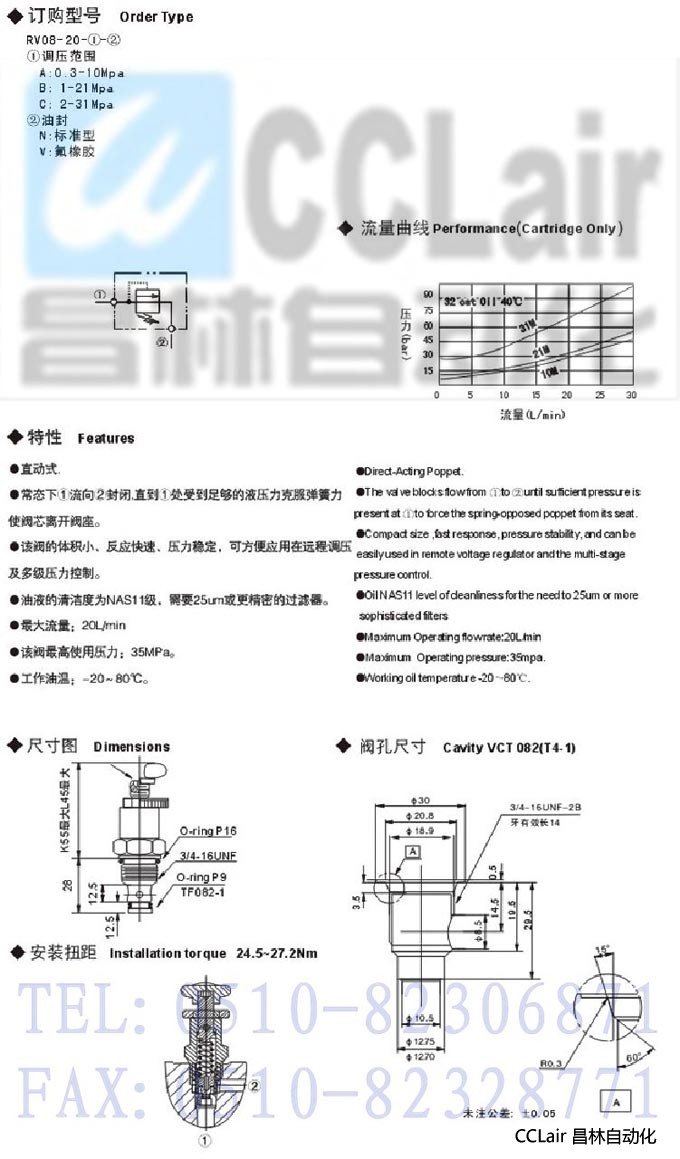 詳細信息 RV08-20-A-N,RV08-20-A-V,RV08-20-B-N,直動式溢流閥