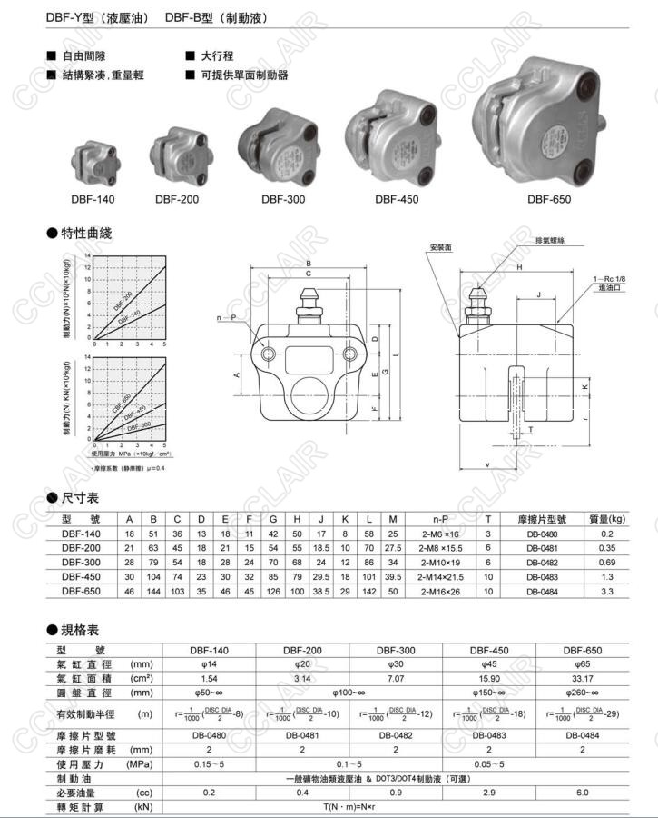 DBF-140,DBF-200,DBF-300,DBF-450,DBF-650,油壓蝶式制動器