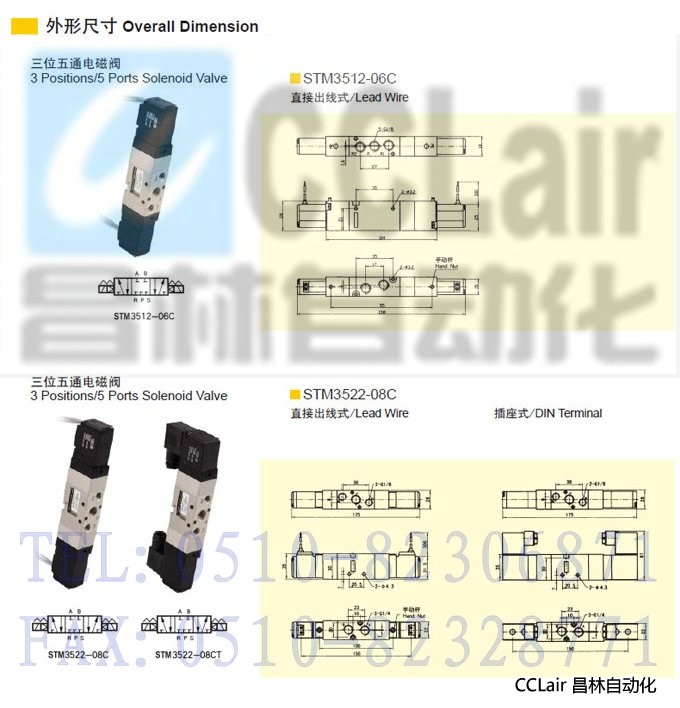 詳細信息 STM3512-06C,STM3522-08C,STM3532-10C,三位五通電磁閥
