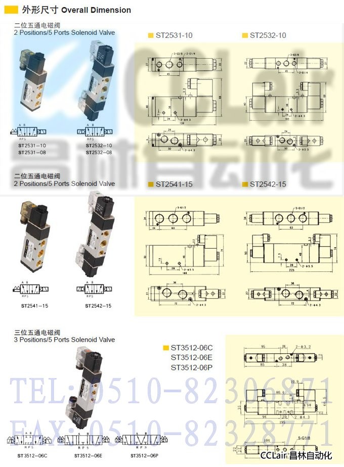ST2511-06,ST2512-06,ST2521-08,ST2522-08,ST2531-10,ST2532-10,二位五通電磁閥