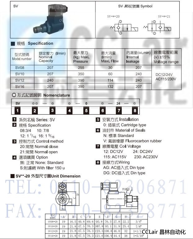 型號: SV08-20,SV10-20,SV12-20,SV1-20,SV08-21,SV10-21,SV12-21,SV1-21