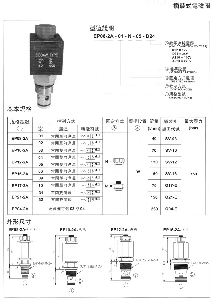 EP08-2A,EP10-2A,EP12-2A,EP16-2A,EP17-2A,EP21-2A,EP04-2A,EP08-2A-01-N-05-D24,插裝式電磁閥