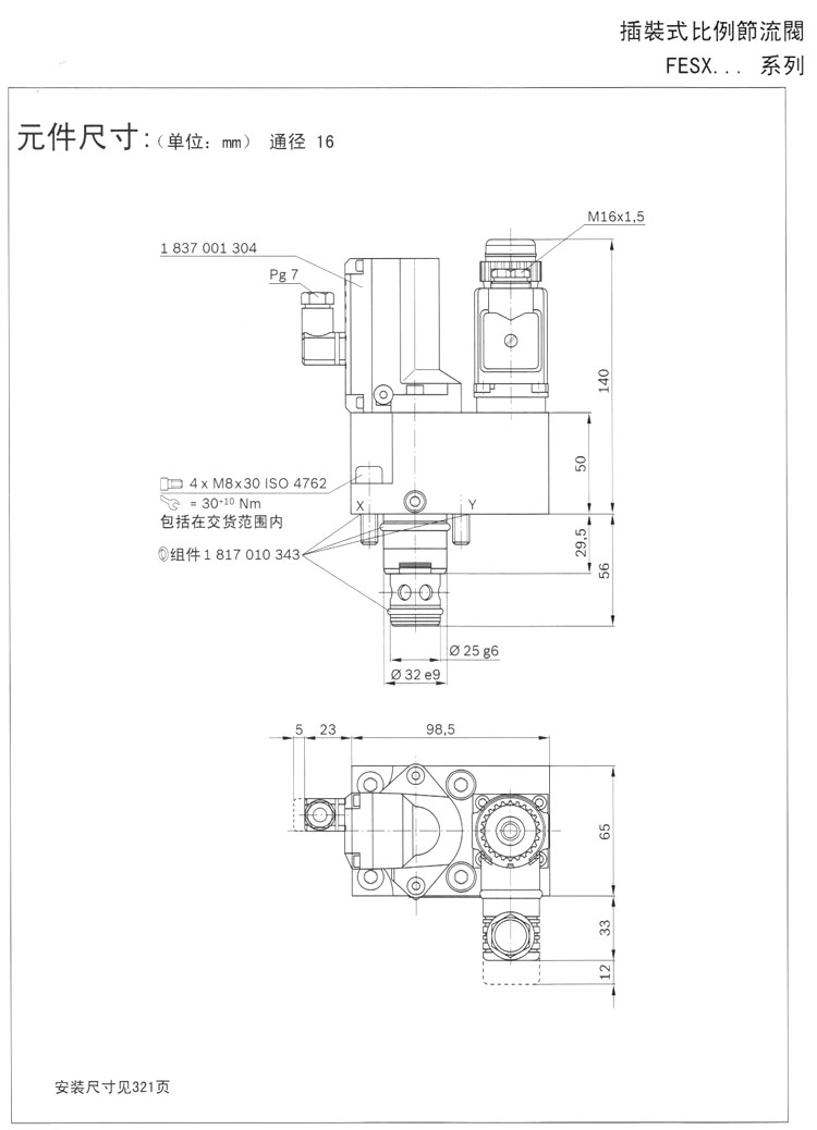 FESX16,FESX25,FESX32,FESX40,FESX50,FESX16CA-1X/125LZ4M,FESX25CA-1X/210LZ4M,插裝式比例節(jié)流閥
