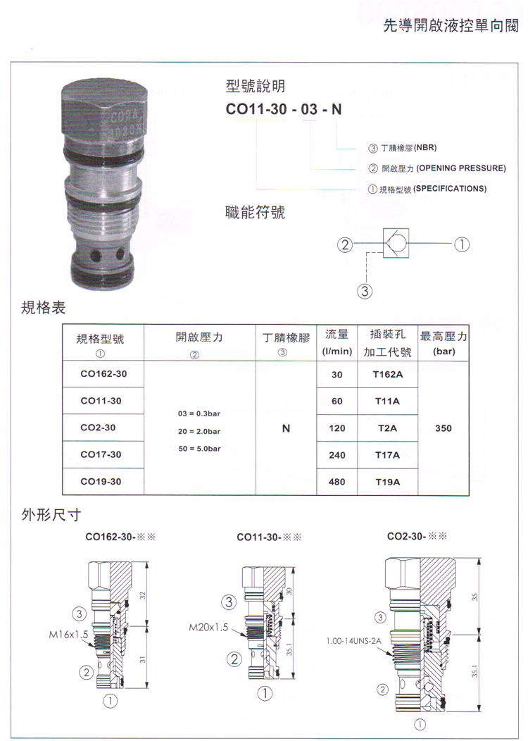 CO162-30,CO11-30,CO2-30,CO17-30,CO19-30,CO162-30-03-N,CO11-30-03-N,CO2-30-03-N,液控單向閥
