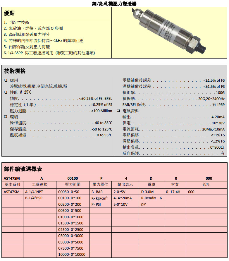 AST47SM-A-00050-B,AST47SM-B-00100-B,AST47SM-A-02500-B,壓力變送器