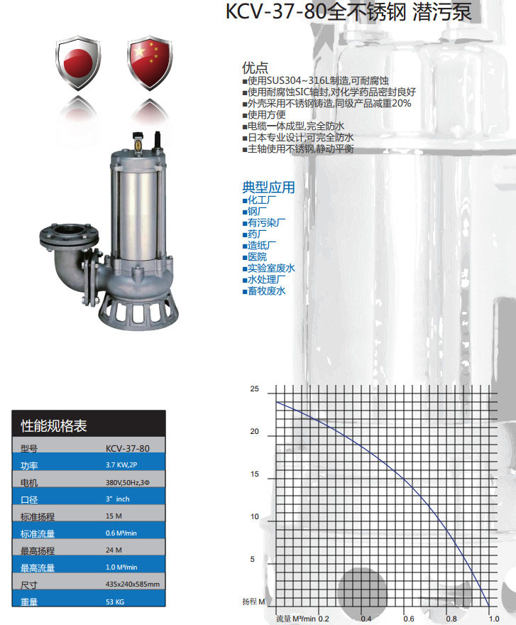 產(chǎn)品: 瀏覽次數(shù):791KCV-37-80,全不銹鋼潛污泵