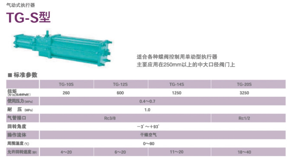 詳細(xì)信息 TG-10S,TG-12S,TG-14S,TG-20S,TOMOE氣動執(zhí)行器