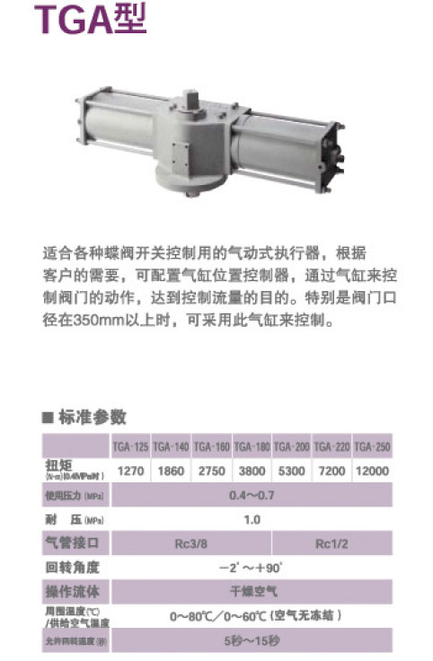 詳細(xì)信息 TGA-125,TGA-140,TGA-160,TGA-180,TGA-200,TGA-220,TGA-250,TOMOE氣動(dòng)執(zhí)行器