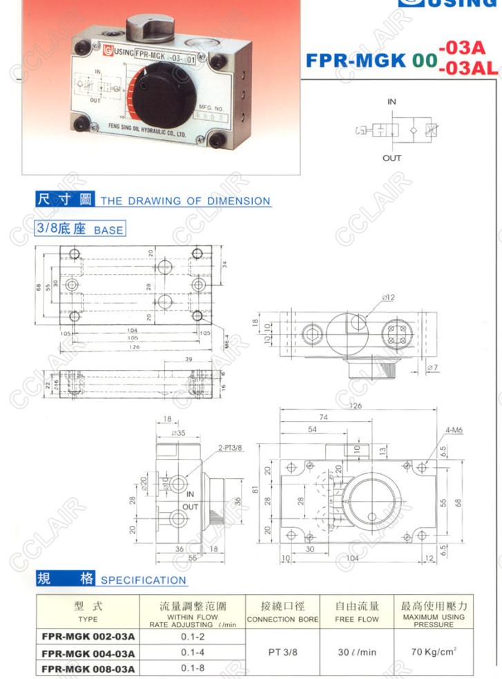 USING峰欣 FPR-MGK002-03A,FPR-MGK004-03A,FPR-MGK008-03A,流量控制閥