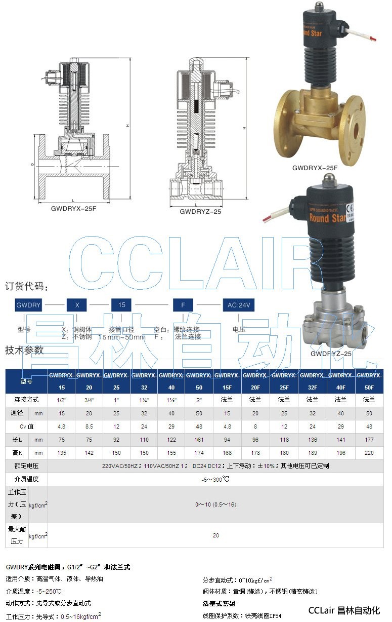 詳細信息 GWDRYX-15,GWDRYX-20,GWDRYX-25,GWDRYX-32,電磁閥,G1/2〞~G2〞和法蘭式
