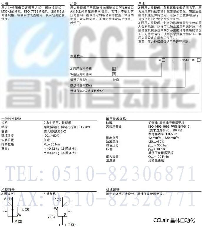 U.FPM33,UDFPM33,UZFPM33,壓力補(bǔ)償插裝閥
