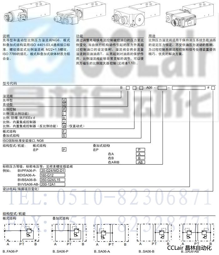 B.PFA06-P,B.PSA06-P,B.PSA06-A,B.PSA06-B,B.PSA06-AB,板式和疊加式比例壓力溢流閥