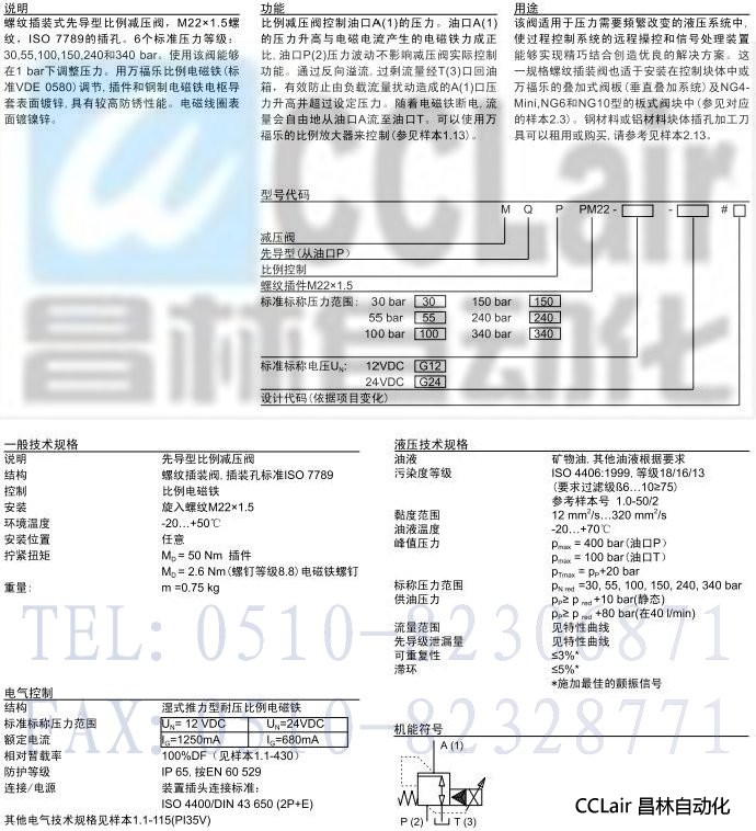 MQPPM22,MQPPM22-30G24,MQPPM22-30G24-A1,先導(dǎo)式比例減壓插裝閥
