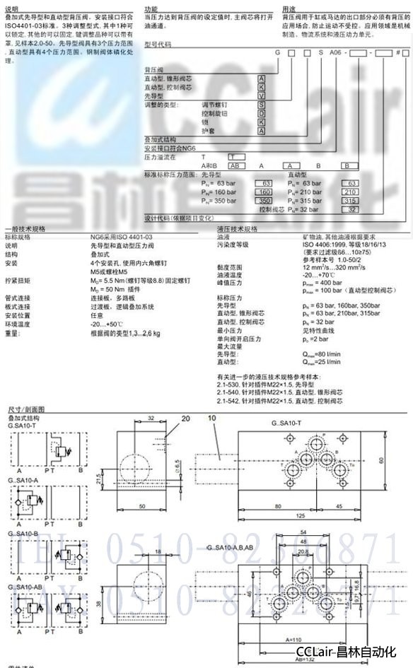 G.SA06-T,G.SA06-A,G.SA06-B,G.SA06-AB,先導(dǎo)式/直動(dòng)式背壓閥疊加式結(jié)構(gòu)
