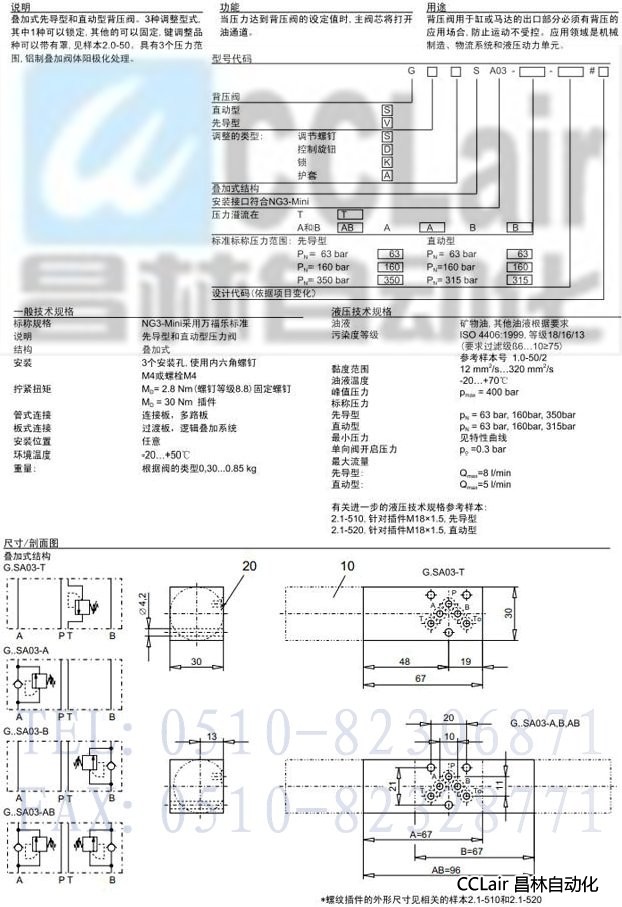 G.SA03-T,G.SA03-A,G.SA03-B,G.SA03-AB,先導(dǎo)式/直動(dòng)式背壓閥疊加式結(jié)構(gòu)