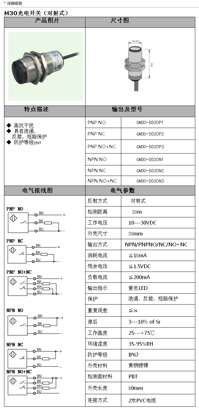 詳細(xì)信息 GM30-DD20P1,GM30-DD20P2,GM30-DD20P3,GM30-DD20N1,GM30-DD20N2,GM30-DD20N3,M30光電(對射)