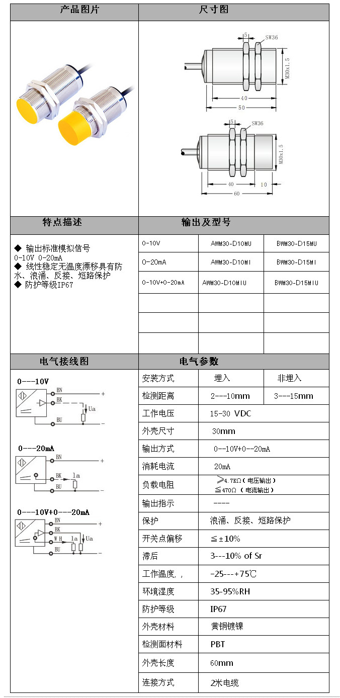AWM30-D10MU,BWM30-D15MU,BWM30-D15MI,AWM30-D10MIU,BWM30-D15MIU,M30模擬量傳感器