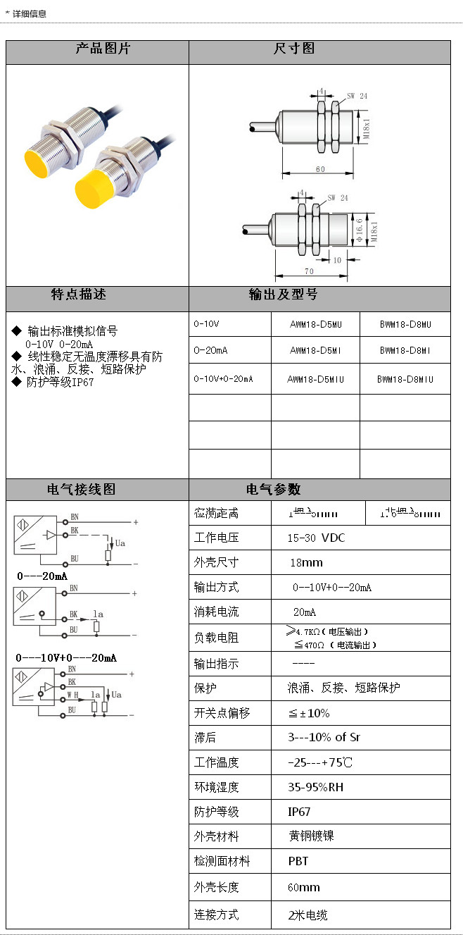 AWM18-D5MU,BWM18-D8MU,AWM18-D5MI,BWM18-D8MI,AWM18-D5MIU,BWM18-D8MIU,M18模擬量傳感器