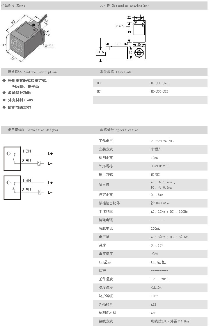 產(chǎn)品: 瀏覽次數(shù):2496方型接近開關 HG-J30-JZK,HG-J30-JZB,