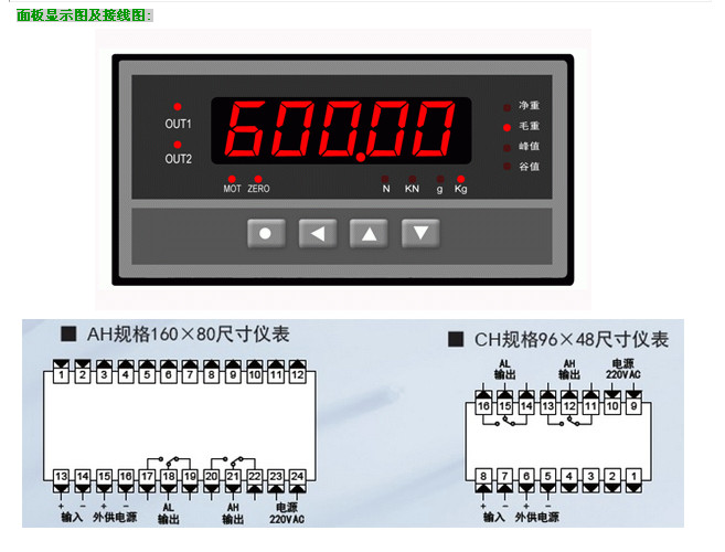 源,帶清零、報(bào)警、峰值保持功能,具有凈重、毛重顯示,峰值、谷值顯示。大量應(yīng)用于工業(yè)動(dòng)化測(cè)量控制系統(tǒng)中。