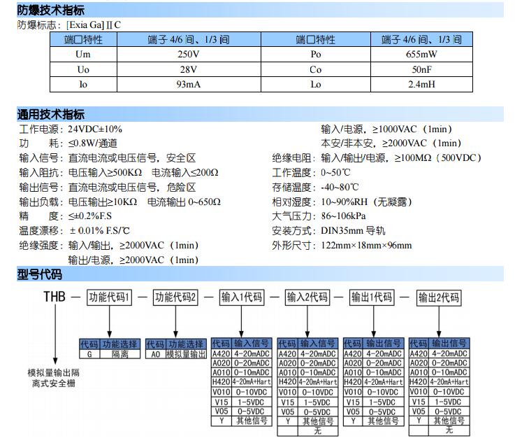 THB-G-AO-A420-2A420,THB-G-AO-V15-A420,THB-G-AO-V010-2V010,THB模擬量輸出隔離式安全柵